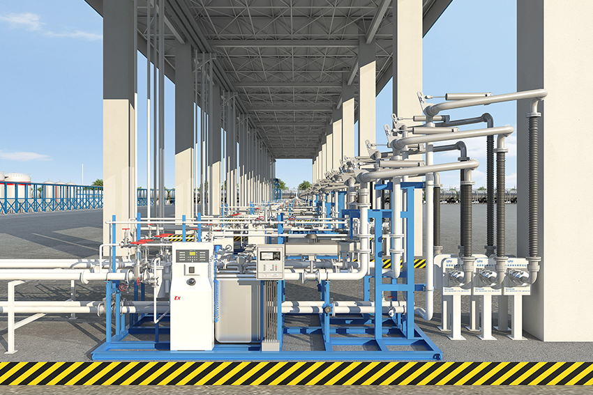 集成比高,安裝就位及維護(hù)方便裝車(chē)樓將控制儀、流量計(jì)、閥門(mén)、管道、附屬設(shè)備、鶴管、中間連接件及電纜、橋架等集成在一起,現(xiàn)場(chǎng)安裝方便,并且整體維護(hù)方便。