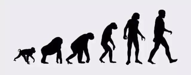 其實,人類的進化也是方向大致正確的結果。我們可能都看過下面這張圖片(當然,這張著名的圖片后來被各種惡搞)。人類的進化一目了然,從爬行的猿猴開始,從左到右一個比一個站得直,一環扣一環地進化到現代直立人。
