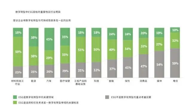 BCG(波士頓咨詢集團)的《2021年全球數(shù)字化轉(zhuǎn)型調(diào)查》報告顯示,ESG目標開始成為部分行業(yè)在數(shù)字化轉(zhuǎn)型中優(yōu)先考慮的主要因素,最重點關(guān)注ESG目標的是材料和加工行業(yè)、汽車、能源等,其中許多是能源密集型的行業(yè),因此減少排放、達成可持續(xù)綠色發(fā)展成為了它們數(shù)字化轉(zhuǎn)型焦點。