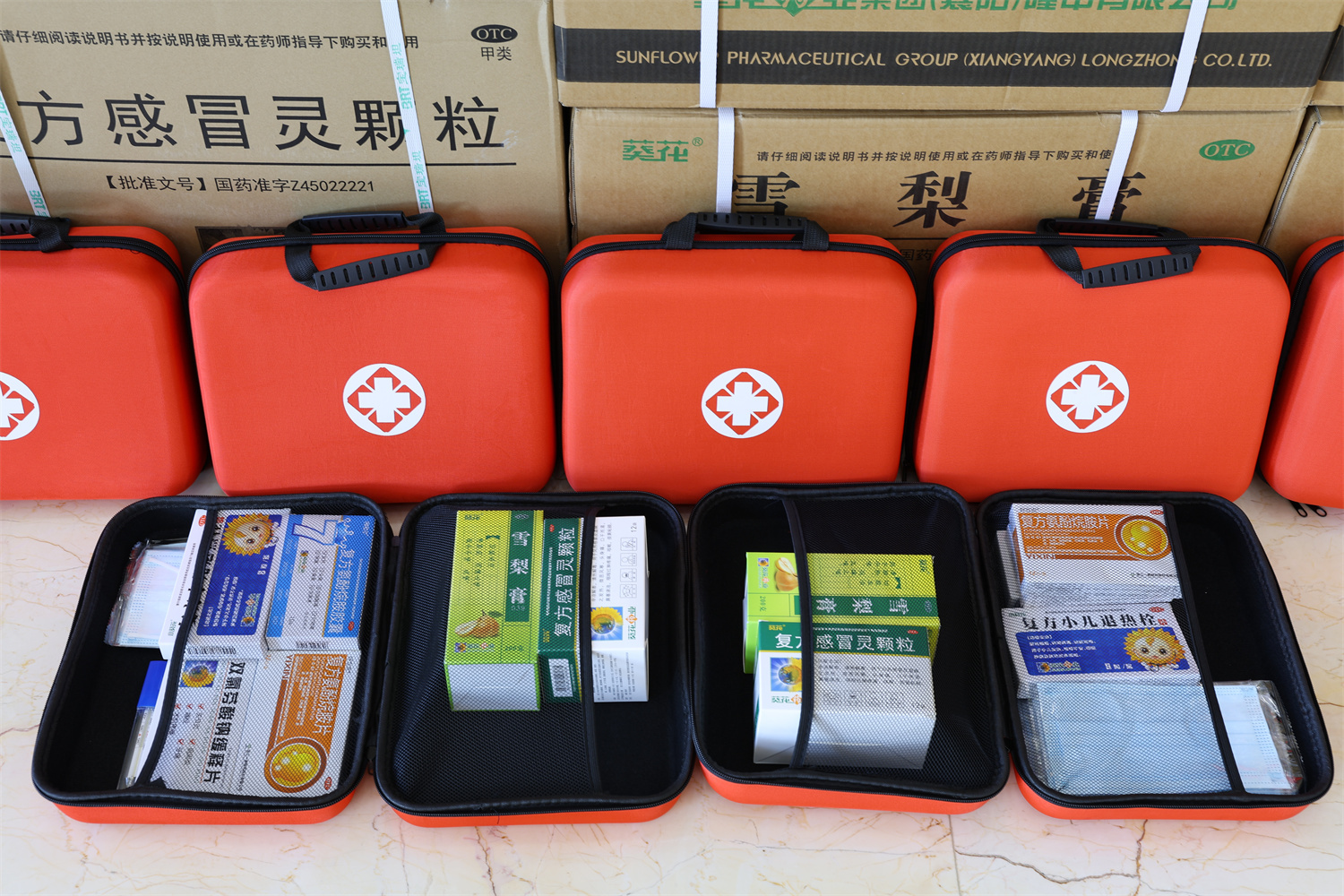 總部“防疫健康包”配備有復方氨酚烷胺膠囊、復方小兒退熱栓、雙氯芬酸鈉緩釋片、復方感冒靈顆粒、雪梨膏等5種防疫常備藥品及溫度計、抗原檢測試劑。