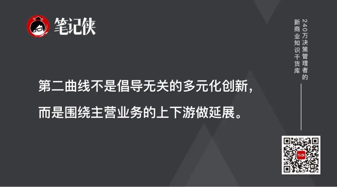 所以,第二曲線不是倡導無關的多元化創新,而是圍繞主營業務的上下游做延展。