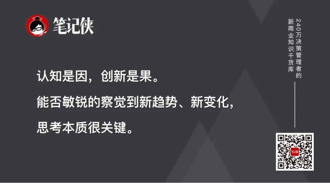 所以,認知是因,創新是果。能否敏銳的察覺到新趨勢、新變化,思考本質很關鍵。想要創新,根本方法是認知升級。
