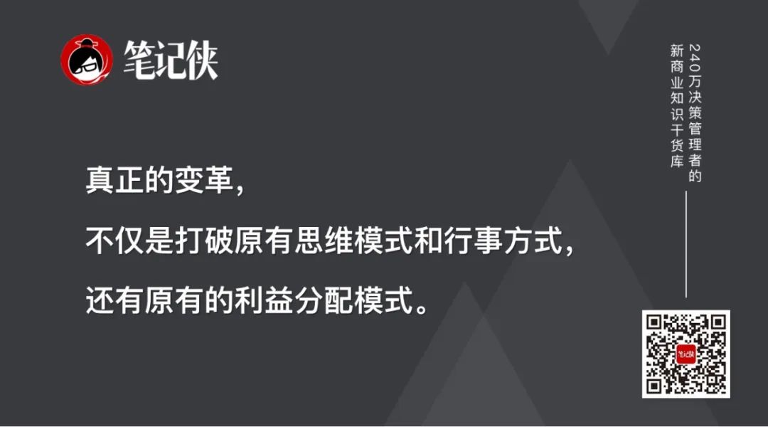 此外,真正的變革,不僅是打破原有思維模式和行事方式,還有原有的利益分配模式。