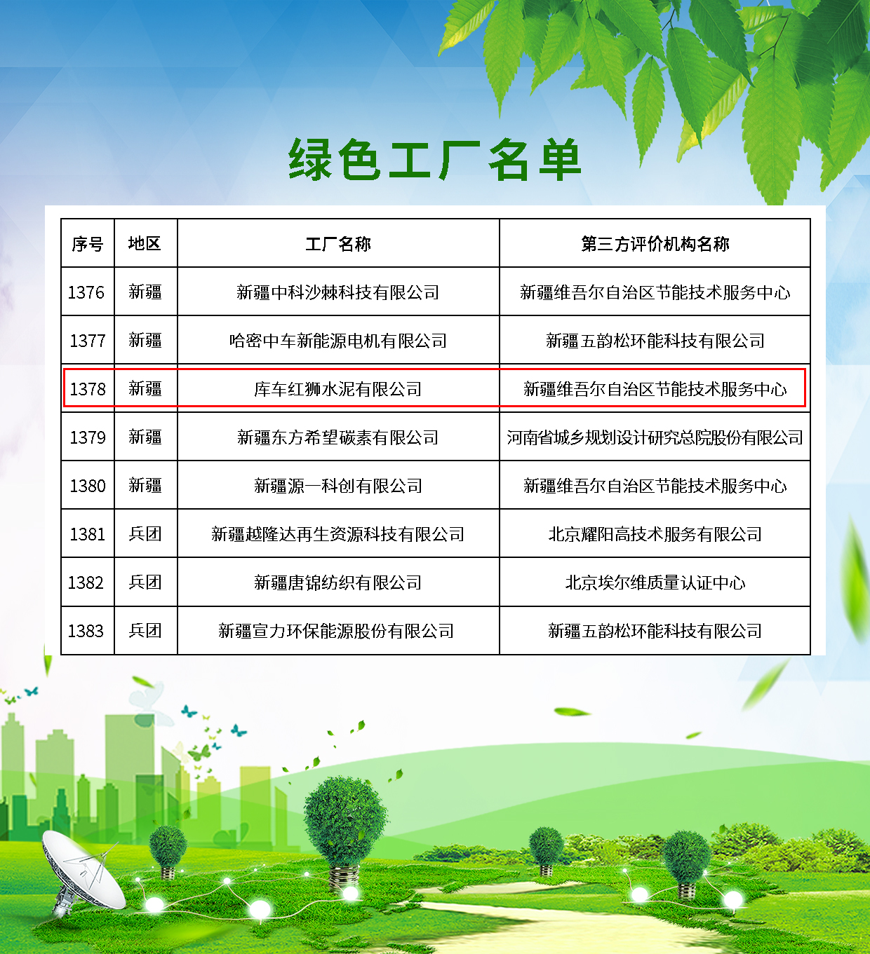 庫車紅獅獲評(píng)“國家級(jí)綠色工廠”稱號(hào)