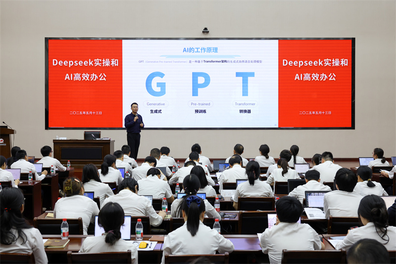 郭總指出,當(dāng)前多數(shù)行業(yè)進(jìn)入存量競爭時代,專業(yè)化能力成為企業(yè)發(fā)展和員工成長的關(guān)鍵。AI技術(shù)正重塑職場能力,掌握DeepSeek等工具的應(yīng)用,是每位員工提升效率、驅(qū)動創(chuàng)新的必修課。集團(tuán)積極響應(yīng)這一趨勢,將AI技術(shù)應(yīng)用納入專業(yè)能力提升范疇。郭總強(qiáng)調(diào),“本次培訓(xùn)旨在通過前沿技術(shù)與實(shí)戰(zhàn)方法論結(jié)合,助力員工實(shí)現(xiàn)從‘傳統(tǒng)辦公’到‘智能辦公’的跨越式升級”。