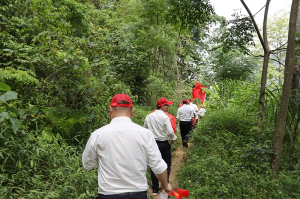 介紹完畢后,黨員干部們滿懷著對中國紅軍的崇敬之情,從上龍鄉甫茶屯出發,沿著革命先烈奮斗的足跡前行。沿途山路狹隘崎嶇,山高林密,但大家不畏艱苦,在跋涉山路中重溫激情燃燒的歲月,感受革命時期的艱難,體驗著革命者那種置身險境英勇拼搏的韌勁,切身體會到革命成功的艱辛和來之不易,從而更加堅定了作為一名黨員干部的信念和決心。